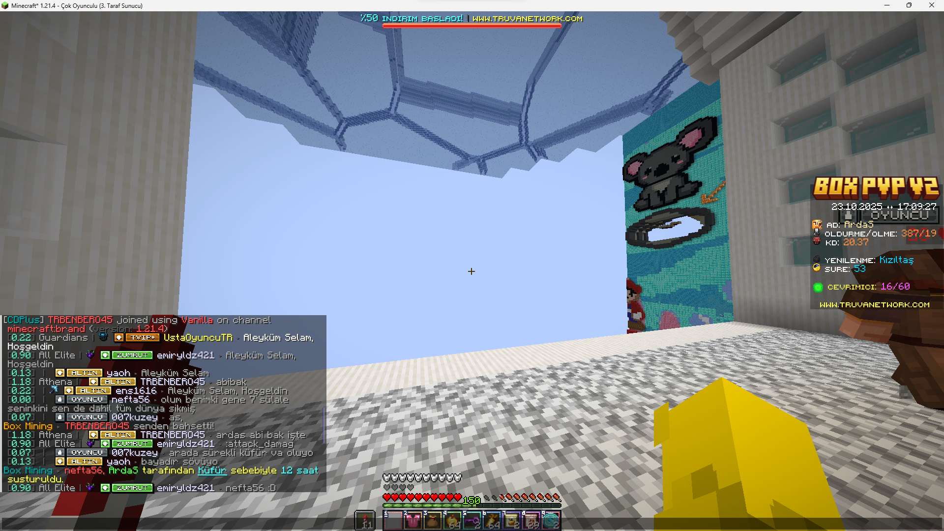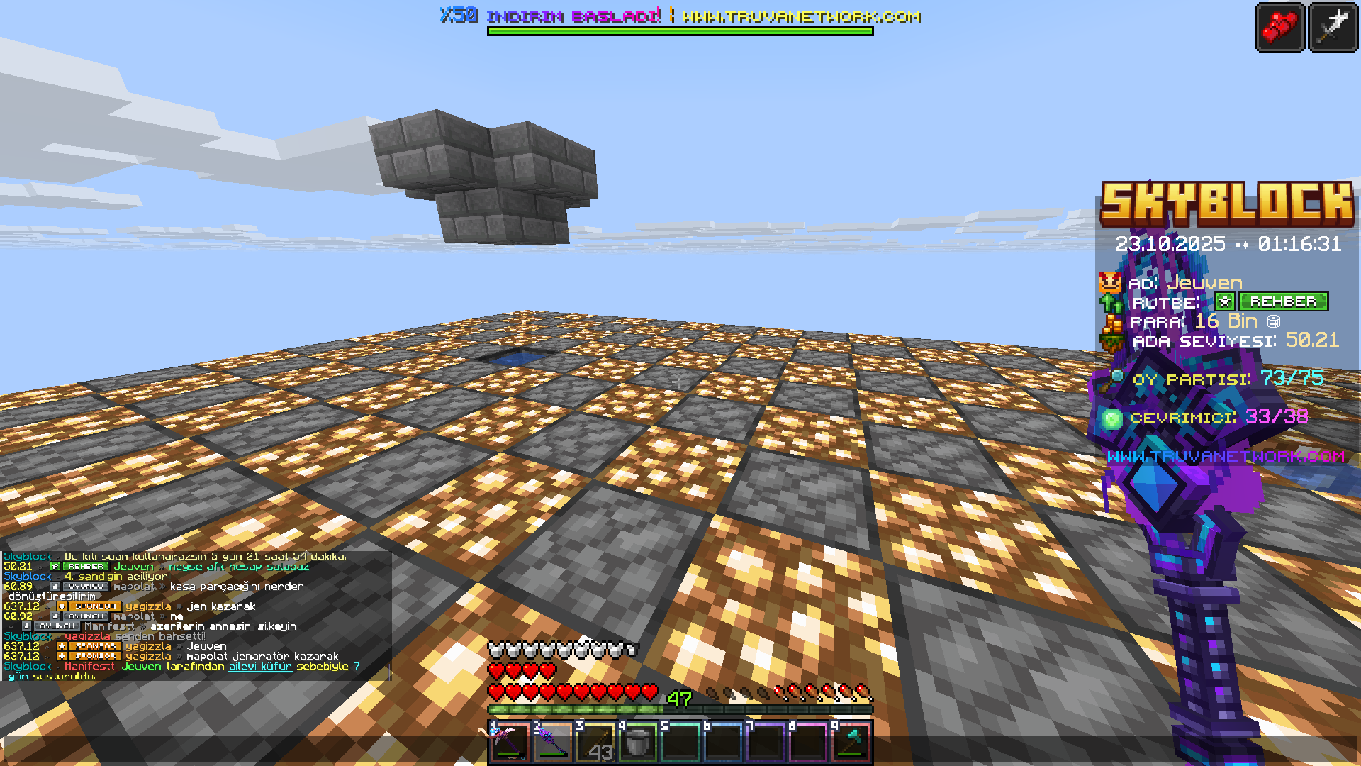 TruvaNetwork, Aralık 2023 tarihinde açılmış gelişmiş bir Minecraft sunucusudur. Adil ve Tecrübeli yetkili kadrosuyla beraber oyuncularına en iyi hizmeti sunmayı amaçlamaktadır. Vergi Kimlik No: 4940371468 BÜYÜKÇEKMECE Vergi Dairesi