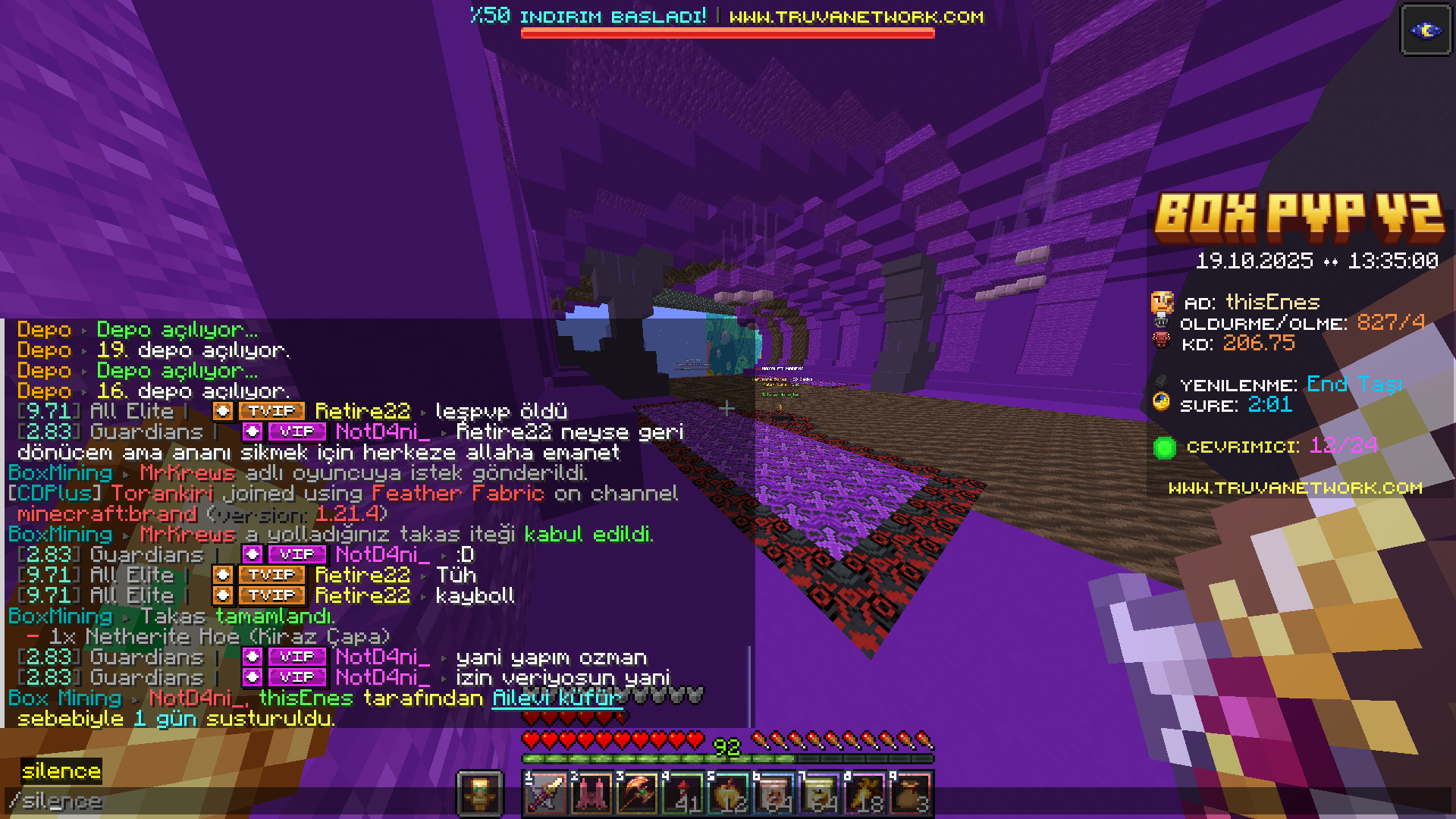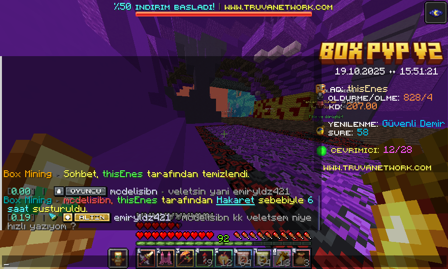 TruvaNetwork, Aralık 2023 tarihinde açılmış gelişmiş bir Minecraft sunucusudur. Adil ve Tecrübeli yetkili kadrosuyla beraber oyuncularına en iyi hizmeti sunmayı amaçlamaktadır. Vergi Kimlik No: 4940371468 BÜYÜKÇEKMECE Vergi Dairesi