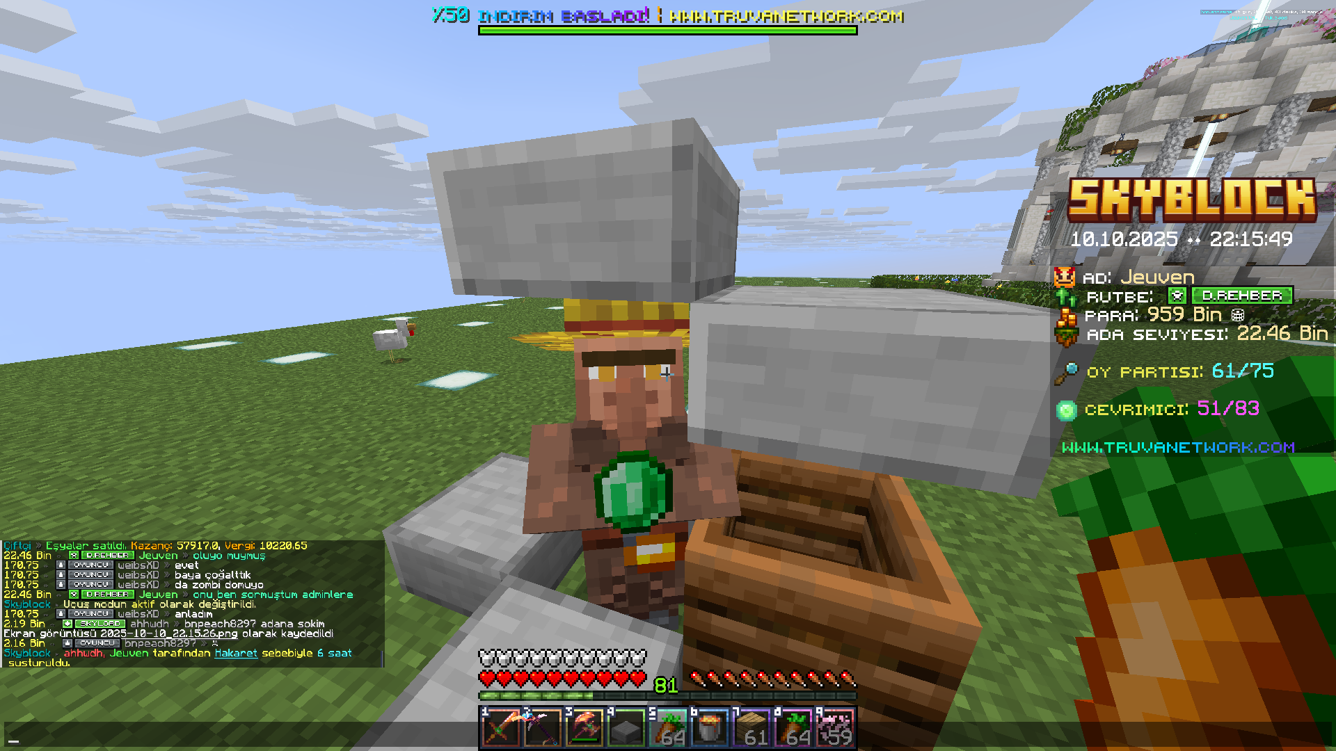 TruvaNetwork, Aralık 2023 tarihinde açılmış gelişmiş bir Minecraft sunucusudur. Adil ve Tecrübeli yetkili kadrosuyla beraber oyuncularına en iyi hizmeti sunmayı amaçlamaktadır. Vergi Kimlik No: 4940371468 BÜYÜKÇEKMECE Vergi Dairesi