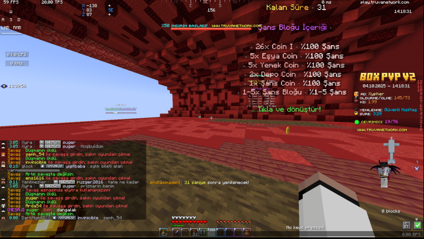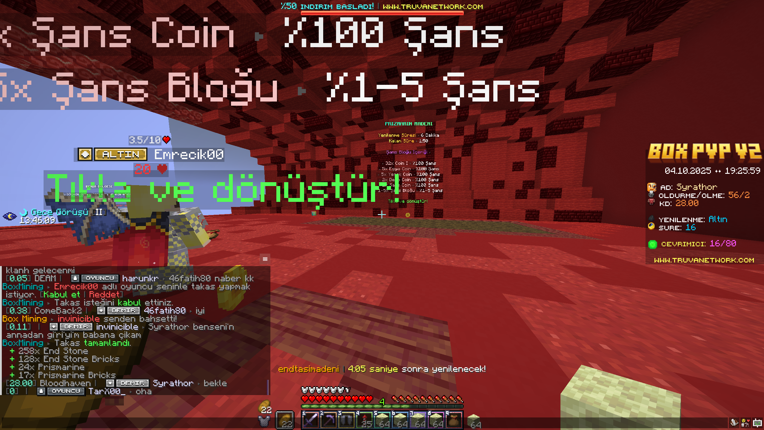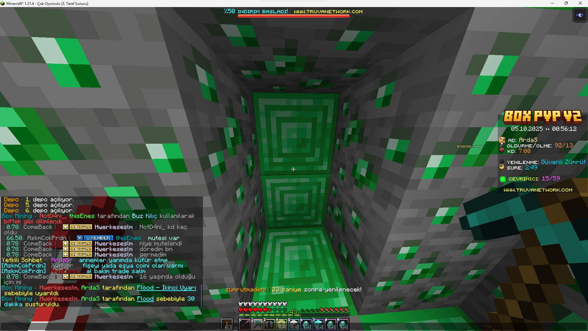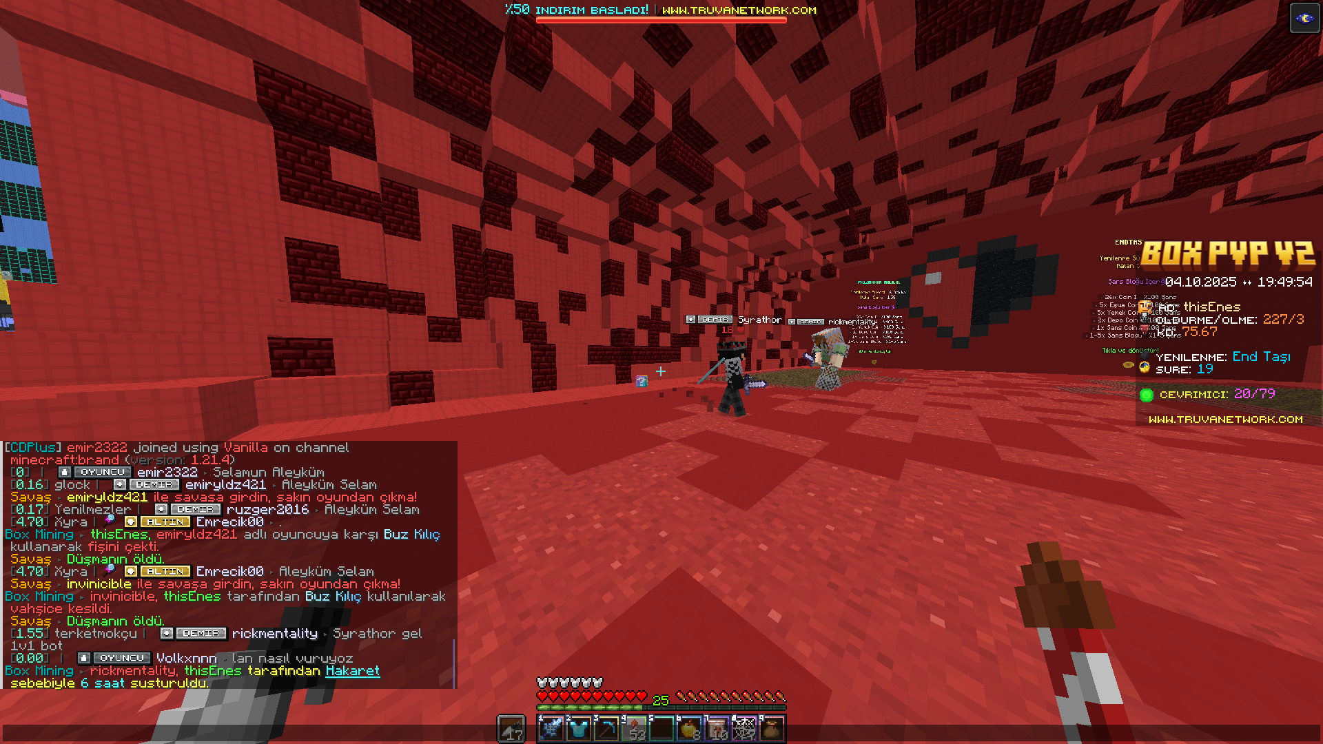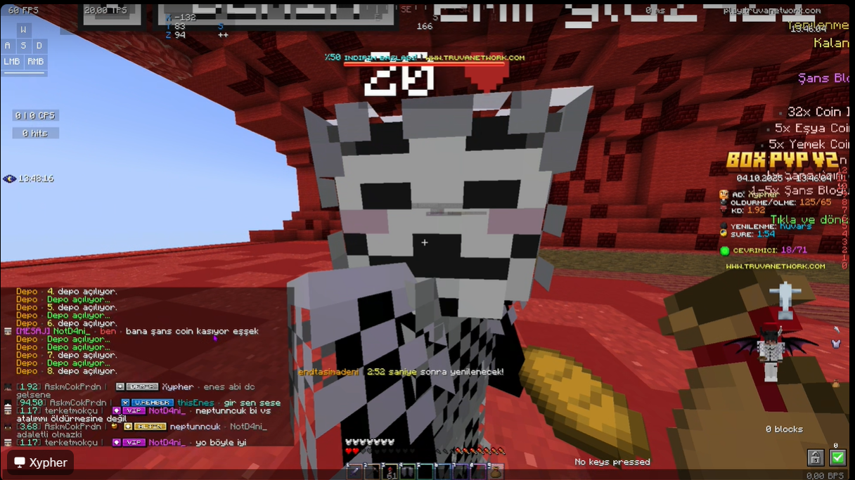 TruvaNetwork, Aralık 2023 tarihinde açılmış gelişmiş bir Minecraft sunucusudur. Adil ve Tecrübeli yetkili kadrosuyla beraber oyuncularına en iyi hizmeti sunmayı amaçlamaktadır. Vergi Kimlik No: 4940371468 BÜYÜKÇEKMECE Vergi Dairesi