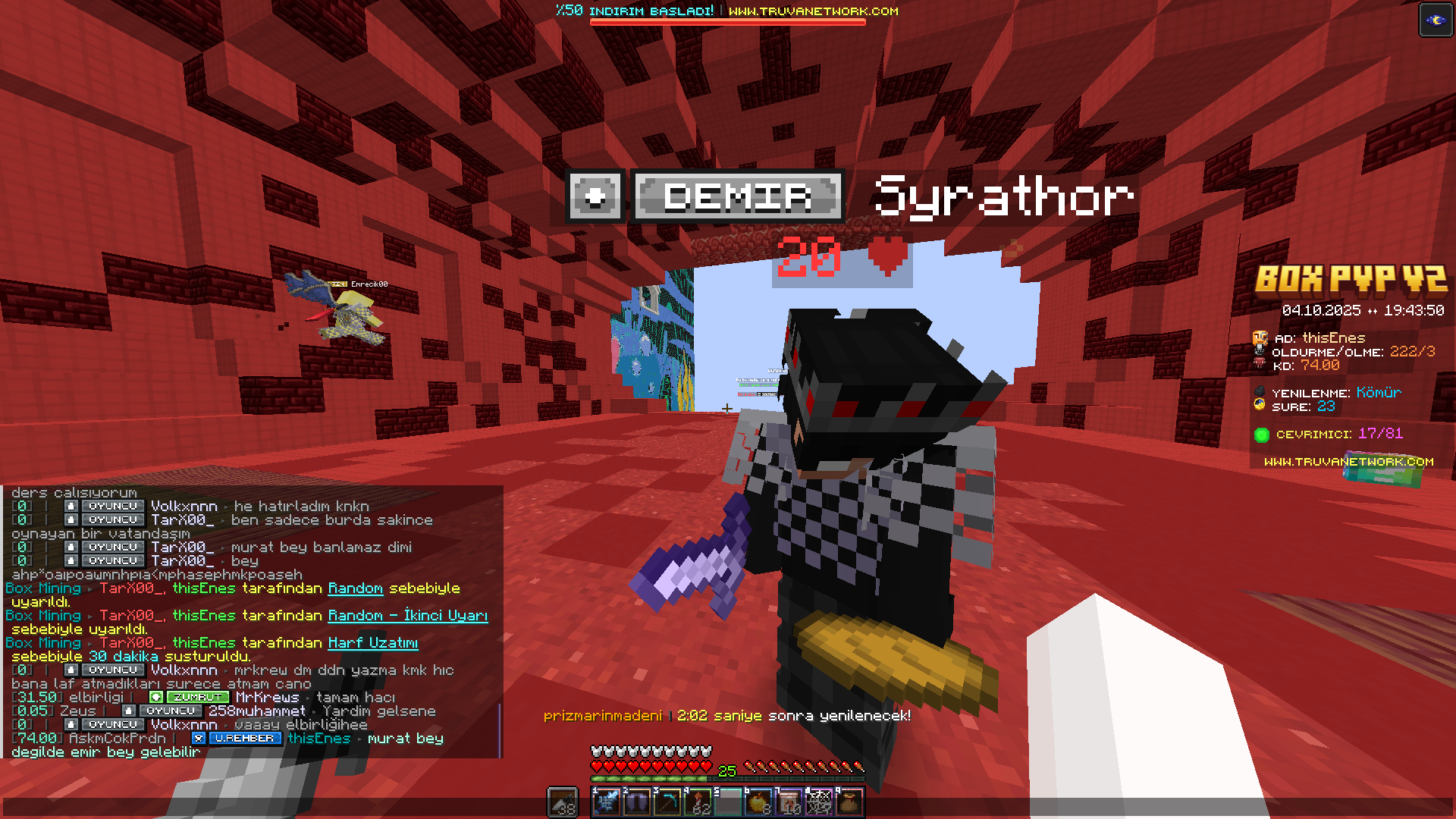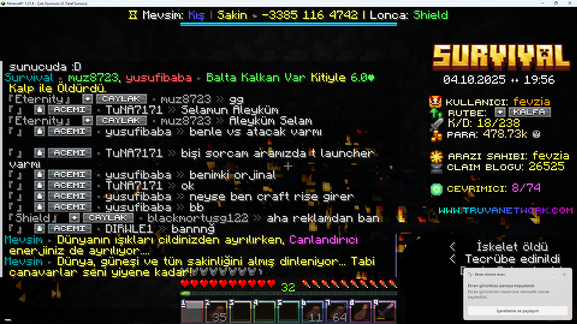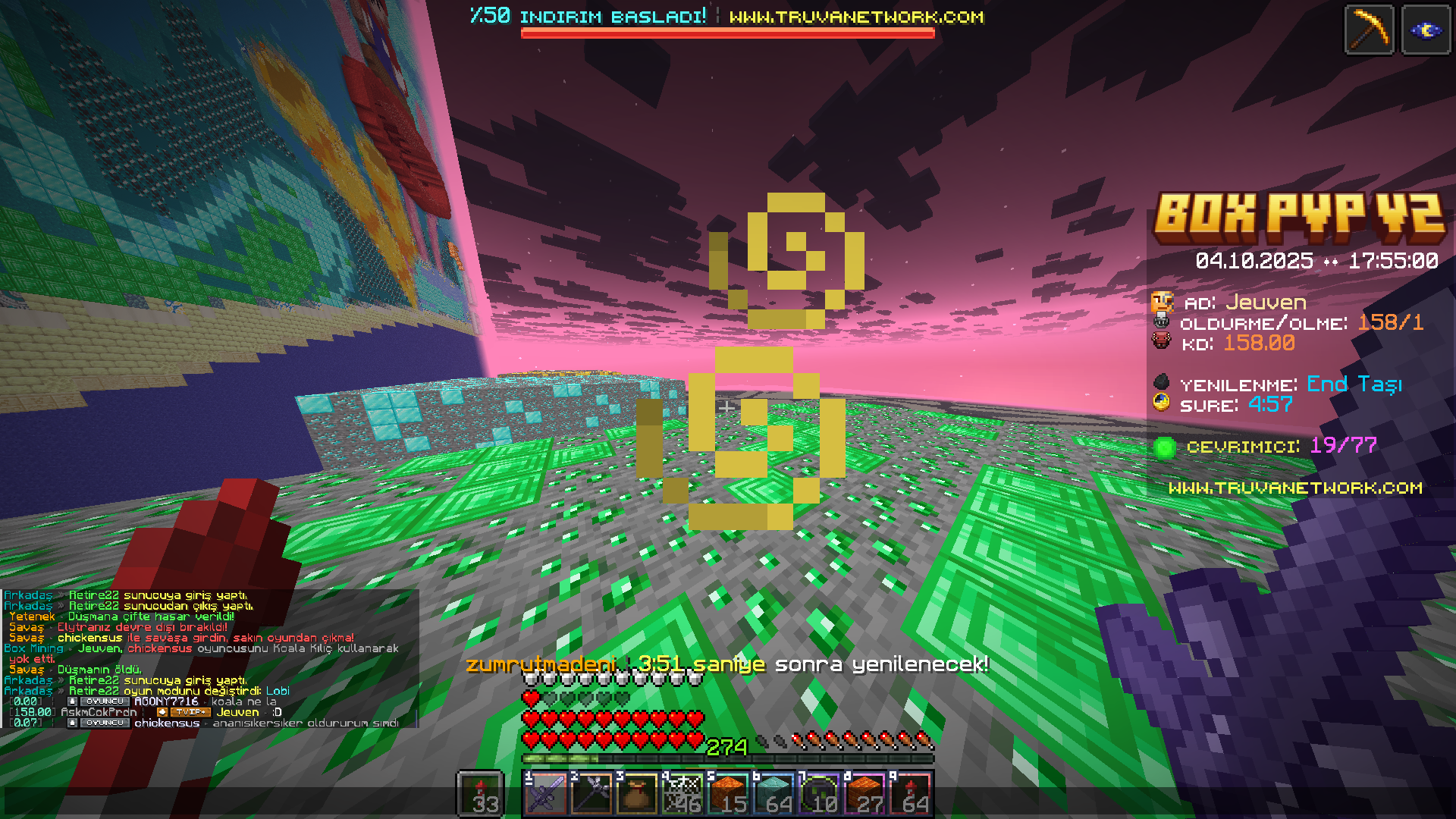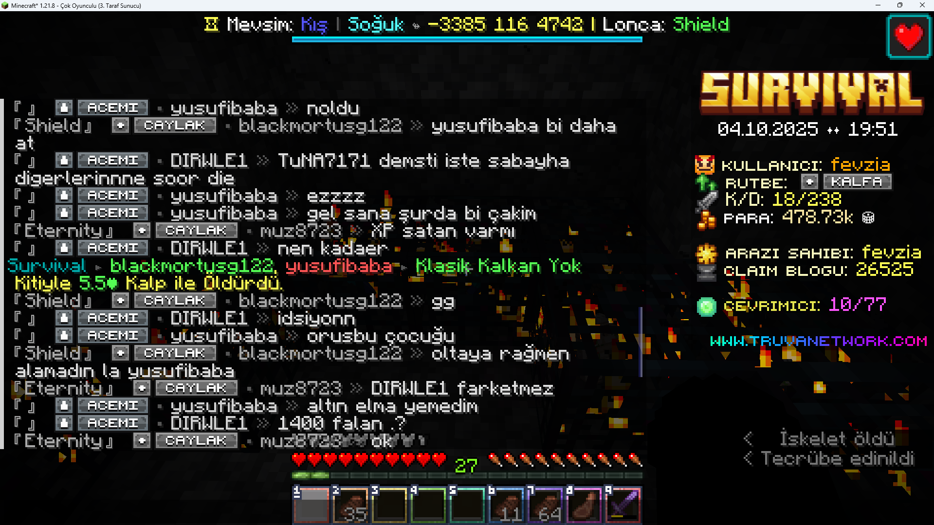 TruvaNetwork, Aralık 2023 tarihinde açılmış gelişmiş bir Minecraft sunucusudur. Adil ve Tecrübeli yetkili kadrosuyla beraber oyuncularına en iyi hizmeti sunmayı amaçlamaktadır. Vergi Kimlik No: 4940371468 BÜYÜKÇEKMECE Vergi Dairesi