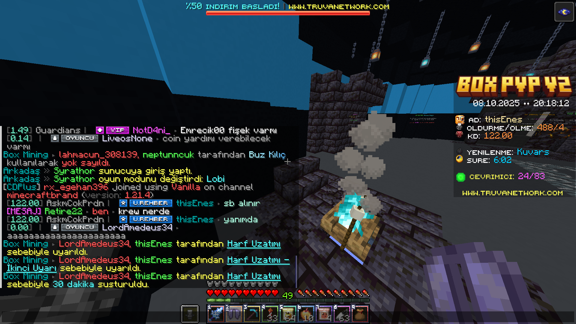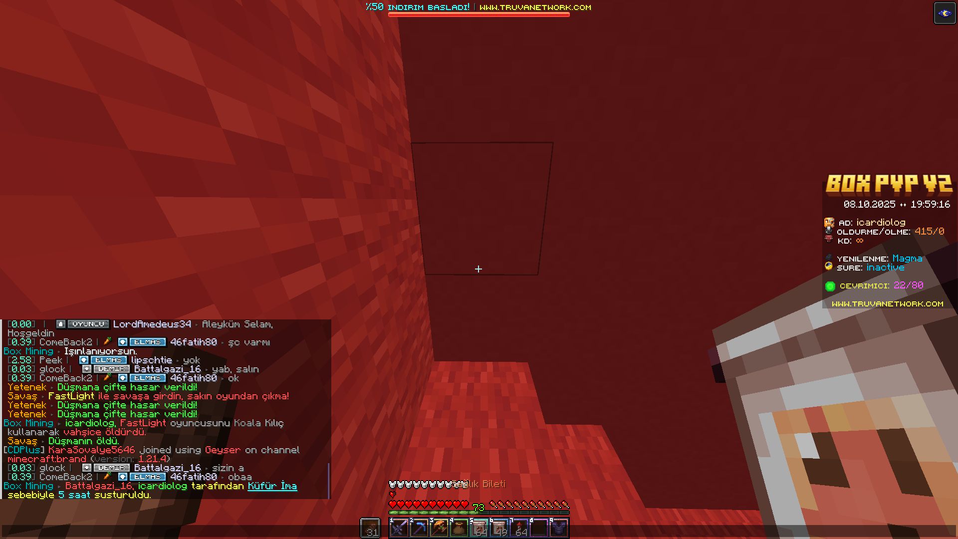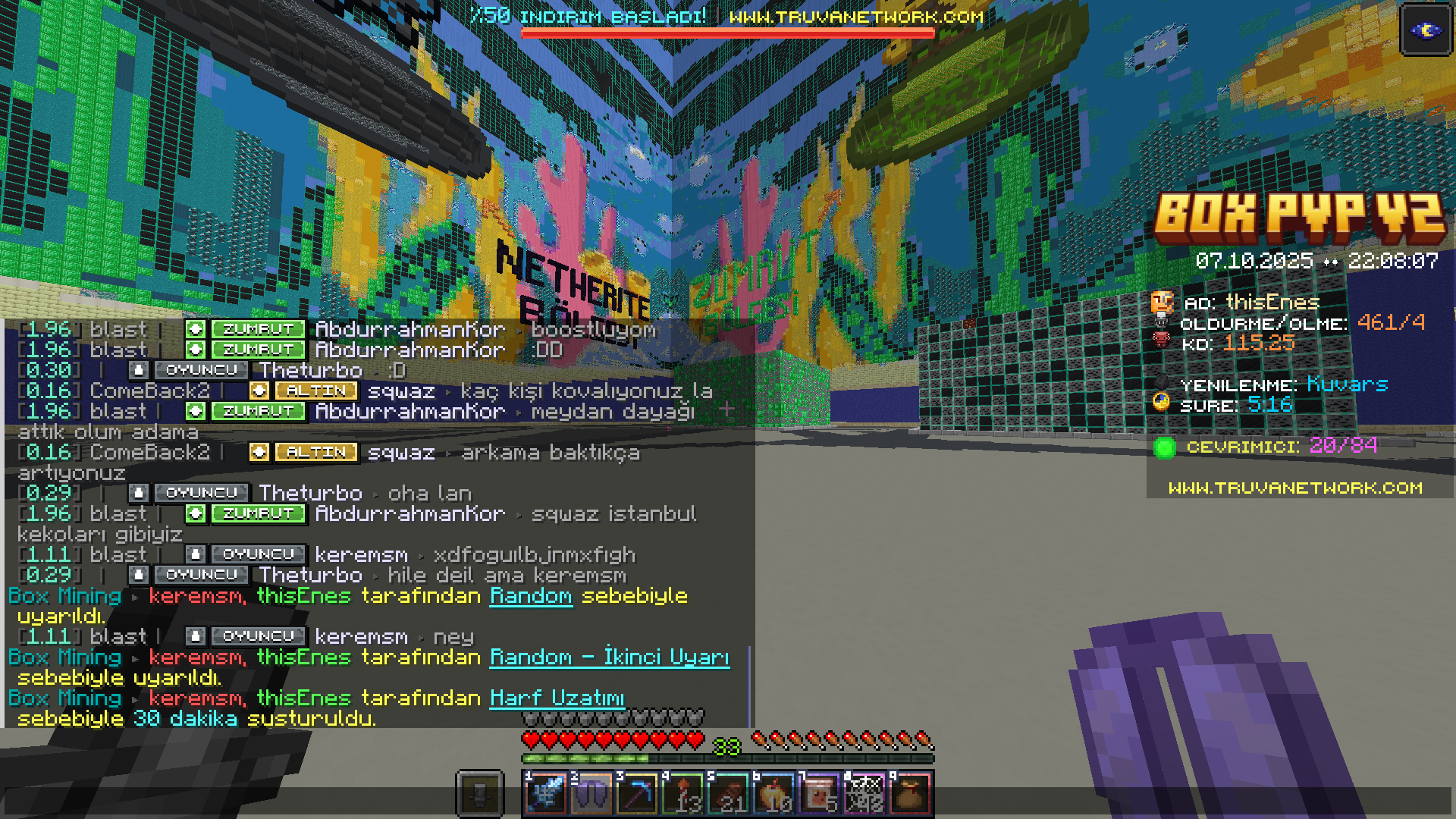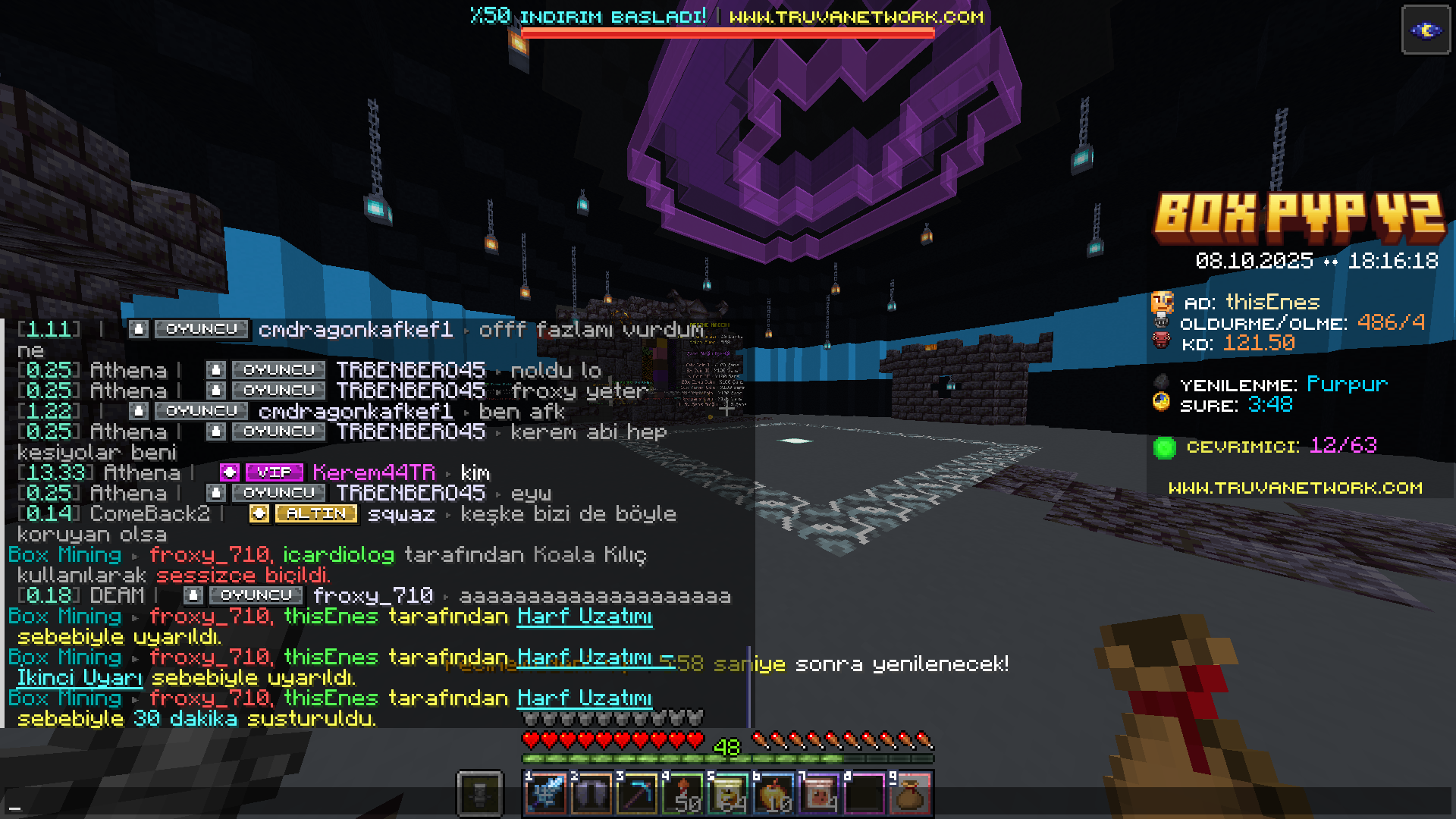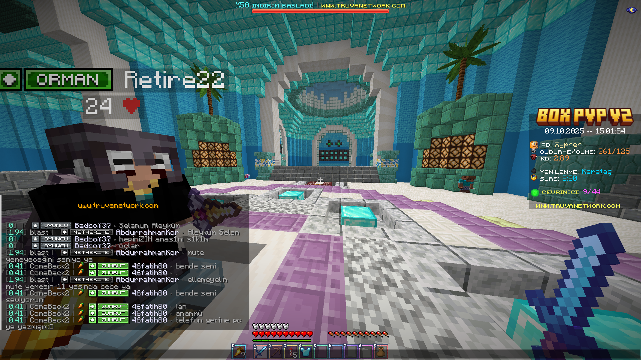 TruvaNetwork, Aralık 2023 tarihinde açılmış gelişmiş bir Minecraft sunucusudur. Adil ve Tecrübeli yetkili kadrosuyla beraber oyuncularına en iyi hizmeti sunmayı amaçlamaktadır. Vergi Kimlik No: 4940371468 BÜYÜKÇEKMECE Vergi Dairesi